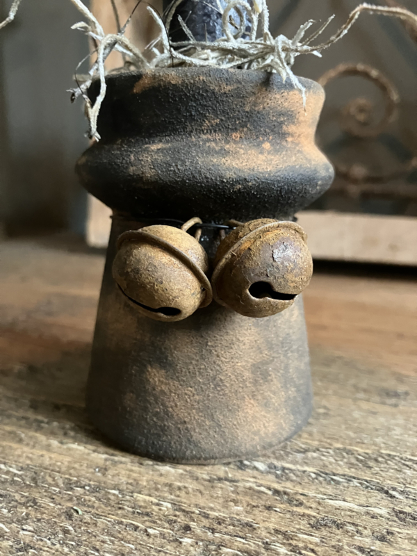 Stenen kandelaartje met belletjes.