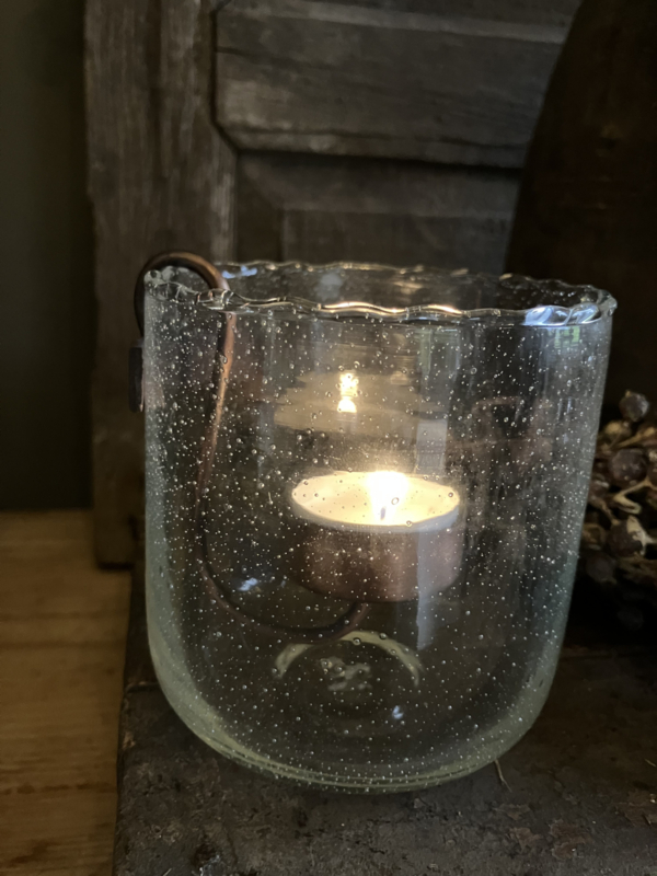 Bubbeltjes windlicht met glashaak kandelaar voor waxinelichtje.