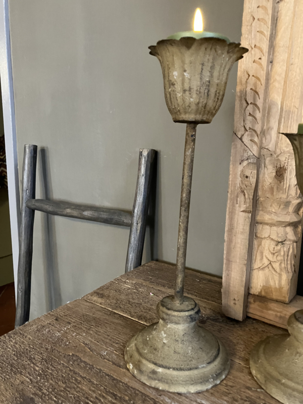 Metalen kandelaar voor dinerkaars of waxinelicht, stompkaars.